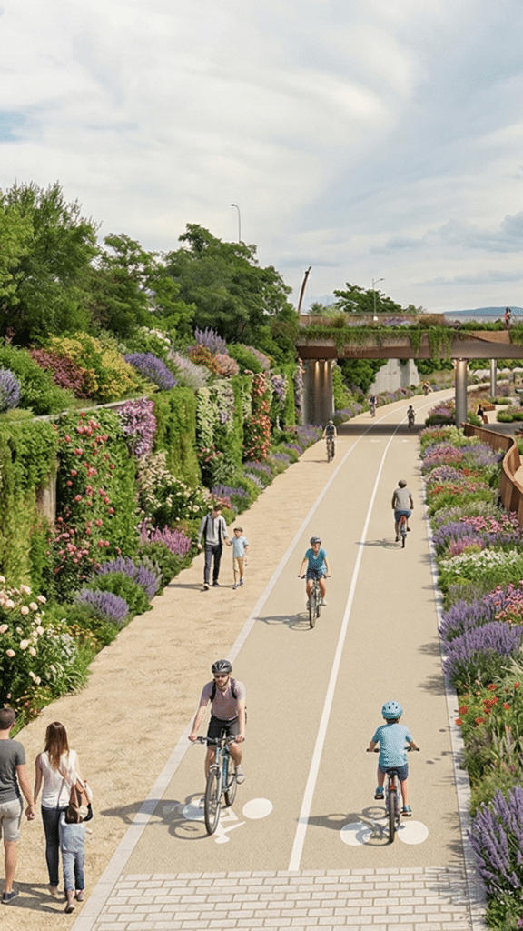 Pour rendre l’itinéraire attractif, plusieurs idées seraient à l’étude. Des guinguettes saisonnières pourraient voir le jour à proximité des échangeurs principaux. Elles seront accompagnées de zones de pique‑nique et de quelques points de vue aménagés.