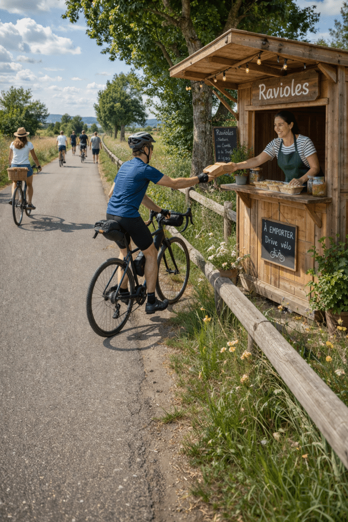 Les amateurs de gastronomie locale devraient aussi être servis. Le projet prévoirait l’installation d’un drive à ravioles à hauteur de Saint-Marcel-lès-Valence, pour récupérer votre barquette sans descendre de vélo.