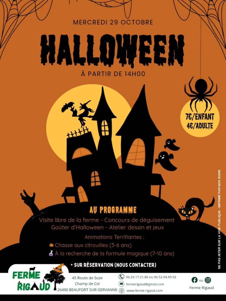 Rendez-vous à la Ferme Rigaud à Beaufort-sur-Gervanne pour un après-midi Halloween. Vos enfants pourront participer à une chasse aux citrouilles (3-6 ans). Mais aussi partir à la recherche de la formule magique dans la forêt (7-10 ans). Vous profiterez aussi d’une visite libre de la ferme, d’un goûter d’Halloween, d’un concours de déguisement et d’ateliers dessin et jeux.