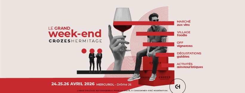 Les 24, 25 et 26 avril, rendez-vous à Mercurol pour la 5e édition du Grand Week-End des Crozes-Hermitage 2026. Trois jours pour (re)découvrir les vins du nord de la Vallée du Rhône. Mais aussi rencontrer les vigneronnes et vignerons qui les font vivre.