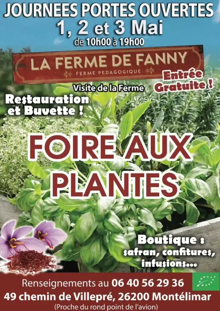 Ce 1er mai, la Ferme de Fanny vous accueille pour sa foire aux plantes, à deux pas de Montélimar. Cette année, les légumes anciens sont à l’honneur : épinards arbustifs, chervis, châtaigne de terre… et bien d’autres variétés à découvrir. Vous trouverez aussi tous les classiques du potager, tomates, courgettes, salades, ainsi que 250 variétés de plantes aromatiques et médicinales venues de France et d’ailleurs. Une boutique propose également safran, confitures et infusions. Et pour compléter la visite, la ferme vous ouvre ses portes pour une balade au cœur de l’exploitation. Restauration sucrée et salée et buvette sont proposées toute la journée.