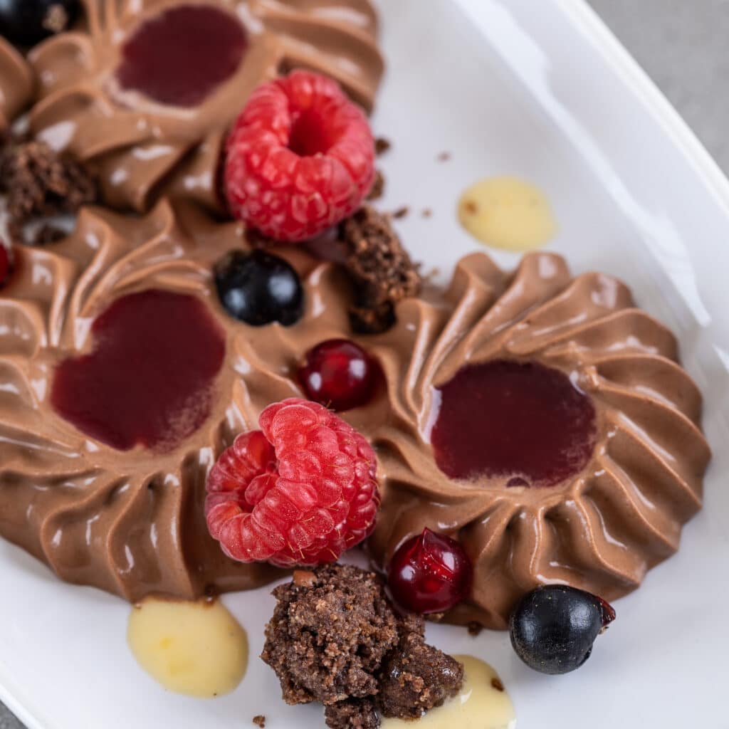 Côté sucré : Bastien Girard, Champion du monde de pâtisserie 2017, vous présente sa brioche feuilletée au Gianduja. Aurélien Fournier termine avec sa création « Couleur d’Ardèche » : crémeux marron, myrtille et pomme au miel de châtaignier.